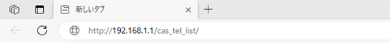 HGW と同一にあるパソコンのブラウザを立ち上げ、「アドレス」欄に「 http://192.168.1.1/cas_tel_list/ 」と入力してください。 |