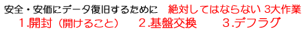 青ざめた顔で持ち込まれる「RAID」のトラブルでよくあるが、おかしくなった時点で自分でディスクの順番を入れかえたり、「RAIDカード」を交換したりして、データを壊してしまうケース。