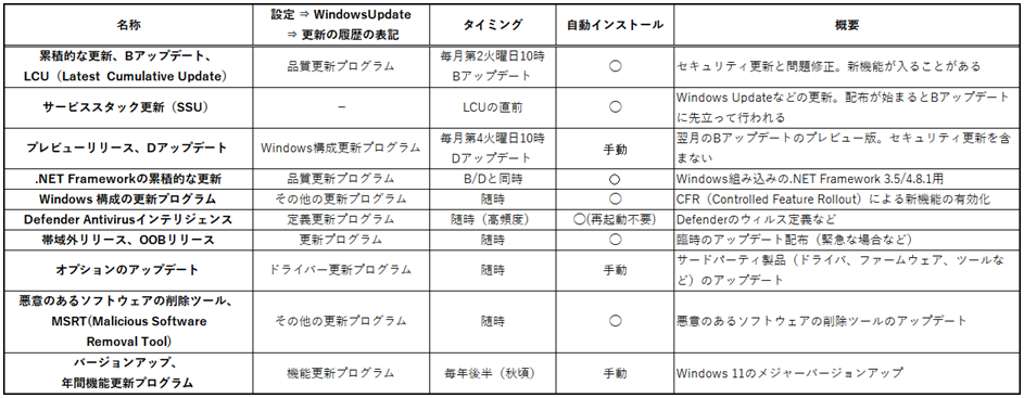 ・機能更新プログラム ( 個) ・品質更新プログラム ( 個) ・ドライバー更新プログラム ( 個)