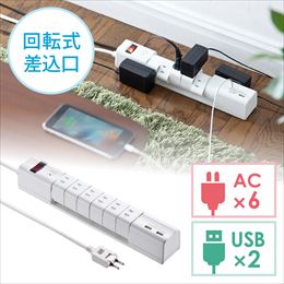 (USB2ポート付・合計最大3.4A出力・6個口・回転式