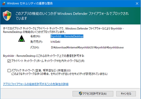 ※ 初回のみ、Windows ファイアウォールのアラートが表示されることがあります。