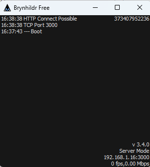 「v 〇.〇.〇(バージョン番号)」の下にパソコンの「IP アドレス(下図では 192.168.1.16)」と「ポート番号(下図では 3000)」が表示されているので、これをメモ用紙等に正確に 控え、電話やメールで、BIOS(操作する側)へお知らせください。