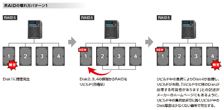 | リビルド中に別のディスクが故障するケースも少なくない。 |